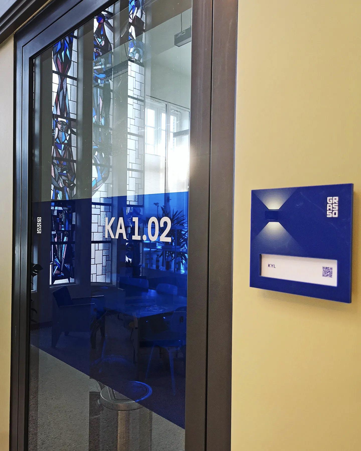 Na de renovatie bij De Grasso mocht Kleefkracht de complete signing en aankleding verzorgen, op basis van het ontwerp van Rijkstudio. Van functionele belijning die bezoekers door het gebouw leidt tot blauwe raamfolie en stijlvolle gevelborden, alles draagt bij aan een heldere en verzorgde uitstraling.