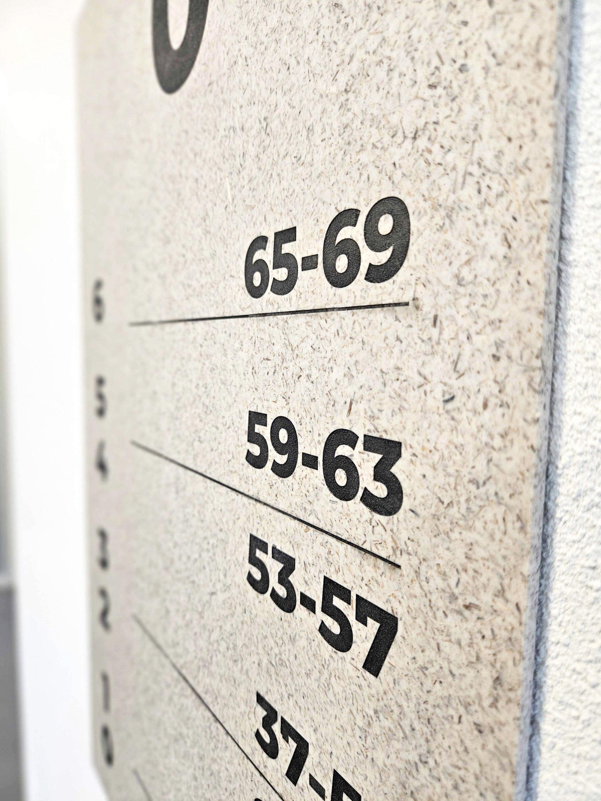 De borden zijn gemaakt van een biobased composiet, samengesteld uit restvezels van riet, kalk uit waterontharding en een biobased hars uit reststromen van onder andere biodiesel-, suiker- en papierproductie. De teksten en nummers zijn in het materiaal gegraveerd en vervolgens ingelakt met plantaardige inkt.