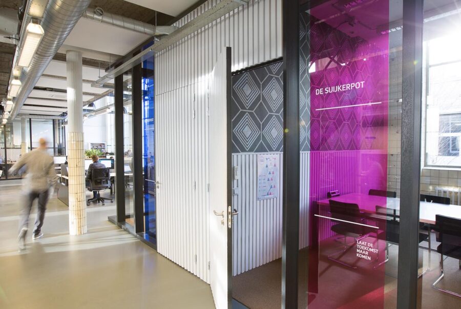 Met bedrukte raamfolie kun je eenvoudig je huisstijl terug laten komen in je werkruimte, zonder grote ingrepen in het interieur. Het geeft karakter aan glaswanden en ramen, zorgt voor eenheid in het ontwerp en kan tegelijkertijd bijdragen aan privacy of routing binnen een kantoor.