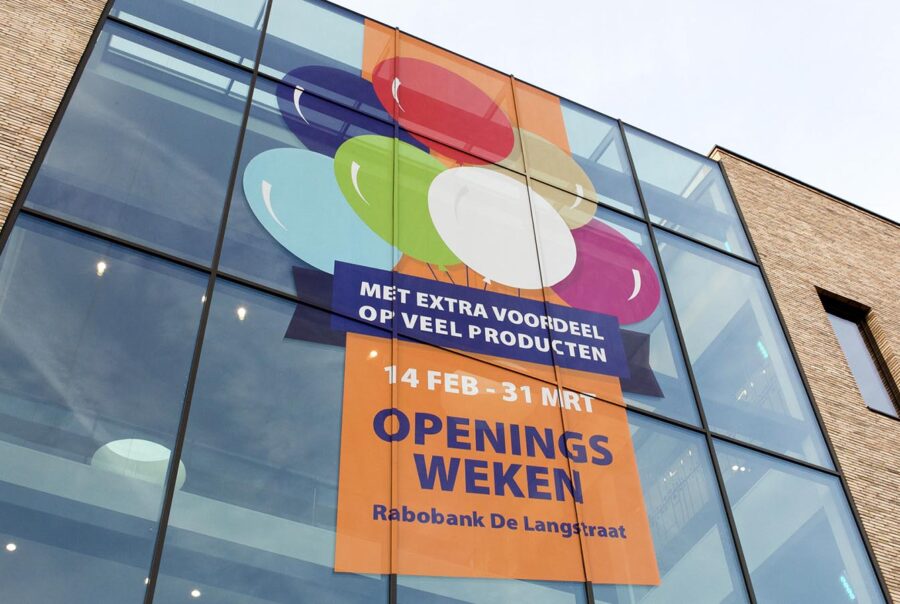 Voor de Rabobank bracht Kleefkracht verschillende communicatie-uitingen aan op de ramen met one-way vision folie. Vanaf buiten was de boodschap niet te missen, terwijl medewerkers binnen vrij zicht naar buiten behielden.