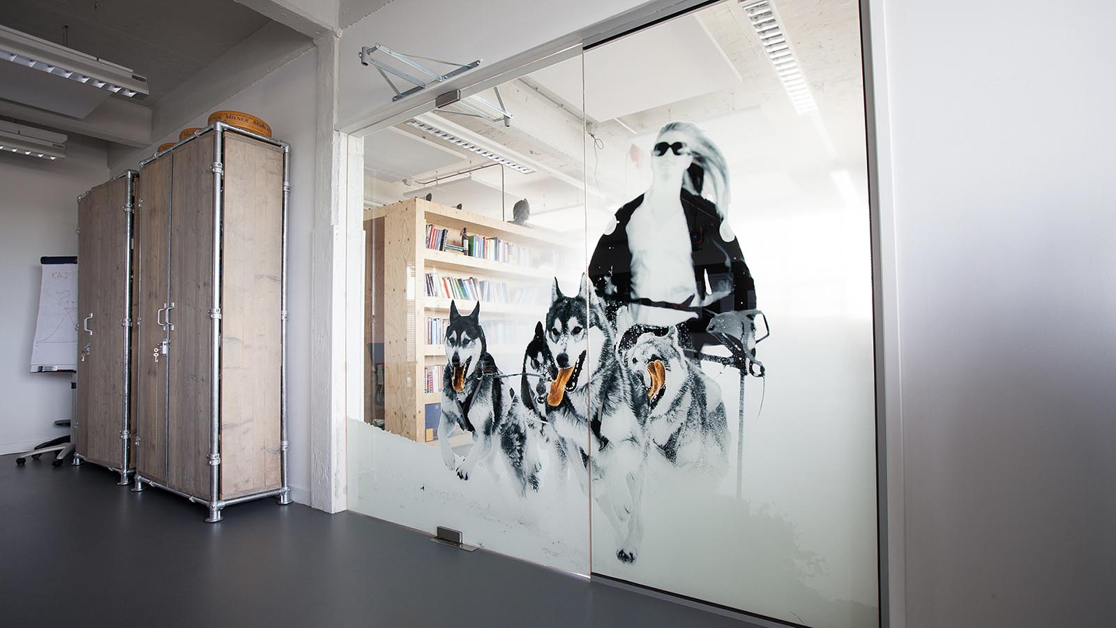 Voor Triadesk realiseerde Kleefkracht een opvallende raamprint die de ruimte in één keer karakter geeft. Met één sterke visual op glas krijgt het interieur direct meer uitstraling, zonder dat er verbouwd hoeft te worden.